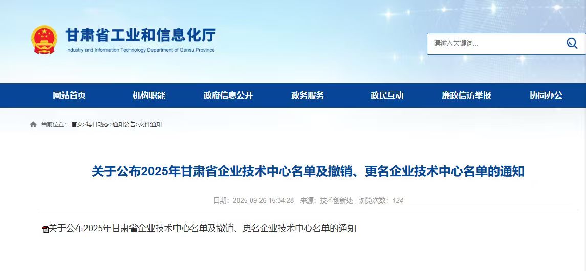 喜訊|公司成功認定2025年甘肅省企業(yè)技術(shù)中心